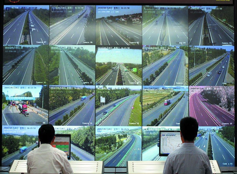 5月28日,在日照市公路局信息中心,工作人员正紧盯屏幕,对全市境内高速公路重点路段、收费站、服务区进行实时监控,对公路路况和交通流量进行调度。 据了解,市公路局信息中心可利用安装在境内高速公路上的104台摄像头,进行视频监控、应急指挥和交通流量调查,实现了一体化的路网管理与应急指挥。