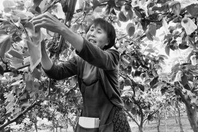 6月18日,东港区后村镇杏坊村果农为黄金梨套袋。近年来,东港区积极谋划实施果品产业发展,以高新农业技术打造品牌体系。梨果套袋技术应用后,有效防止病虫危害、减少农药污染,使果面洁净美观、果实贮藏期延长、商品果率提高、高档果比例增加,市面价格高,经济效益十分可观。