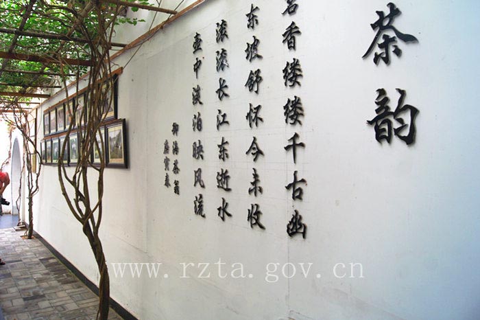 从一扇竹门进入茶园,便见一条小径蜿蜒向前,两侧柏树林立,紧挨着两行柏树的就是成片的茶树。茶园内有一块巨大的“天韵石”,上书“中国近海第一茶”七个大字,遒劲有力。这里的茶树比一般的茶树高一些,更加便于游客采摘。茶园内鸟语虫鸣,植被茂盛,空气极为清新,是一处难得的天然氧吧。此处名为“茶寿道”,游人漫步于“茶寿道”,从“十岁入学”到“一百零八岁茶寿人生”几经转折,几层阅历,顿感彻悟,如何写好如虹的自我,可谓智者见智,仁者见仁,各有所得各有所悟。