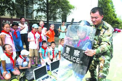 7月18日上午,韩家营子边防辖区16名小学生在老师的带领下,到了韩家营子边防派出所零距离体验警营生活。 期间,官兵带领孩子们一起参观了官兵宿舍、荣誉室等场所。边防官兵还向他们展示了多功能警用匕首、防刺背心、警用盾牌、防暴网枪等警用器材,并详细讲解了警用器材的用途和使用方法。孩子们还试穿了装备,亲身体验了一番当警察的乐趣。