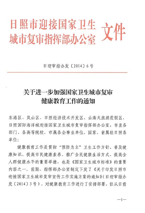 关于进一步加强国家卫生城市复审健康教育工作的通知(2014年07月22日)