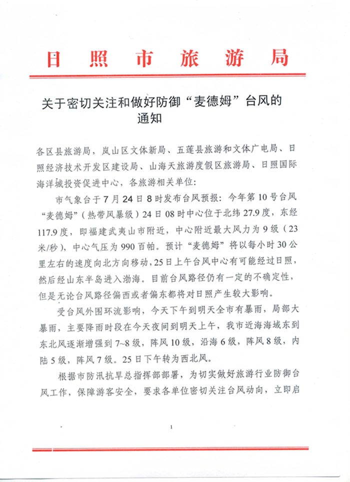 关于密切关注和做好防御“麦德姆”台风的通知(2014年07月24日)