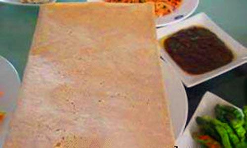 九仙煎饼与别处不同,它主要以去皮的地瓜为原料制作而成,配以鲜嫩豆腐和辣椒,色细白,不干不柴,筋道有咬头,若是再卷上几条小黄鳝子鱼,着实美味可口,台湾的<<山东文献>>记载:黄鲫子鱼卷煎饼,为日照食品之一绝,久食不厌。
