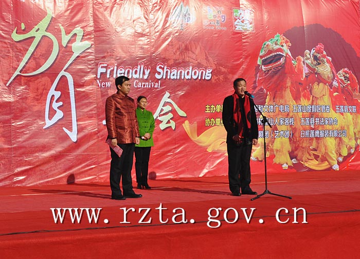 上午10点18分,第六届“好客山东·山水五莲贺年会开幕式”在五莲山旅游度假区管委小榆林村开幕。本届“好客山东·山水五莲贺年会”将从1月1日一直持续到3月5日,主要以元旦、春节、元宵三大节日为节点,连续举办“五莲山迎新年祈福、过大年唱大戏、春节服装展示、新年新福新春联、农家热炕头”系列活动,并开展“美陈大赛、春节记忆、服装展销、摄影大赛、微信微景大赛”贺年会5大评选活动。研发“春意冬韵·滑雪之旅”、“登山泡泉·温泉之旅”、“黑虎冬围·狩猎之旅”“山乡大年·乡村之旅”等逍遥游冬季产品,推出新年五莲山第一缕阳光、光明寺第一香,黑虎山第一枪、温泉汤第一泡、滑雪场第一滑、大青山第一拳的“六·一贺年游”活动,营造独具五莲特色的好客嘉年华,2015年“好客山东·山水五莲贺年会”拉开帷幕。