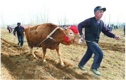 3月21日,在山东省日照市岚山区黄墩镇双疃社区上双疃村,村民参加“二月二 闹春牛”活动。 当日是农历二月初二,上双疃村举行传统的“二月二 闹春牛”活动,迎接传统的“龙抬头日”,30多户村民带着自家的牛参赛,祈求一年风调雨顺、五谷丰登。