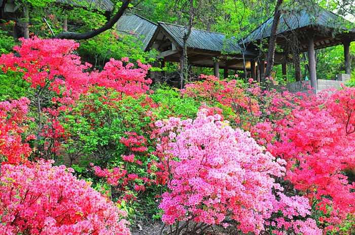 3月31日,九仙山黑牛场杜鹃花园内,迎红杜鹃(兰槿)迎春绽放,进入盛花期。五莲山旅游风景区杜鹃花由于其品种之多,面积之广,花色之丽,誉冠华北,素有“江北第一”杜鹃园之称。从3月底开始,迎红杜鹃、映山红、照山白等品系将陆续开放,盛花期一直持续到6月份。