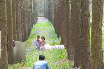 4月的日照海滨森林公园,满地的二月兰、油菜花成为新人们拍摄婚纱照最理想的场景。 山海天旅游度假区的碧海、森林、礁石、海岛构成了如诗如画的靓丽景观,成为无数新人们婚纱拍摄的外景地,来自省内地市以及江苏、河南、安徽等地的新人们齐聚日照海滨。