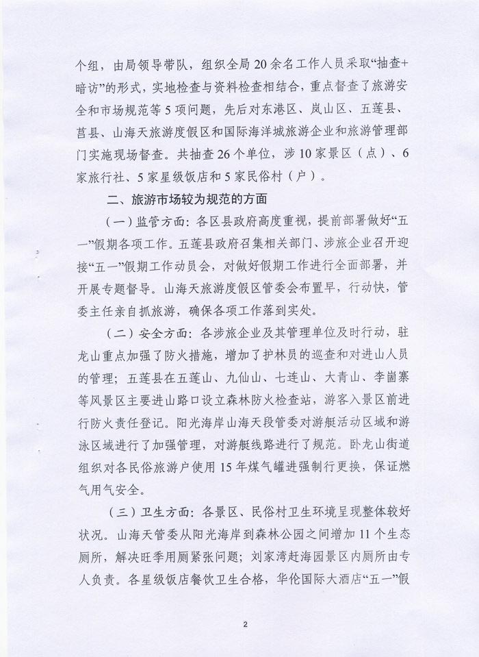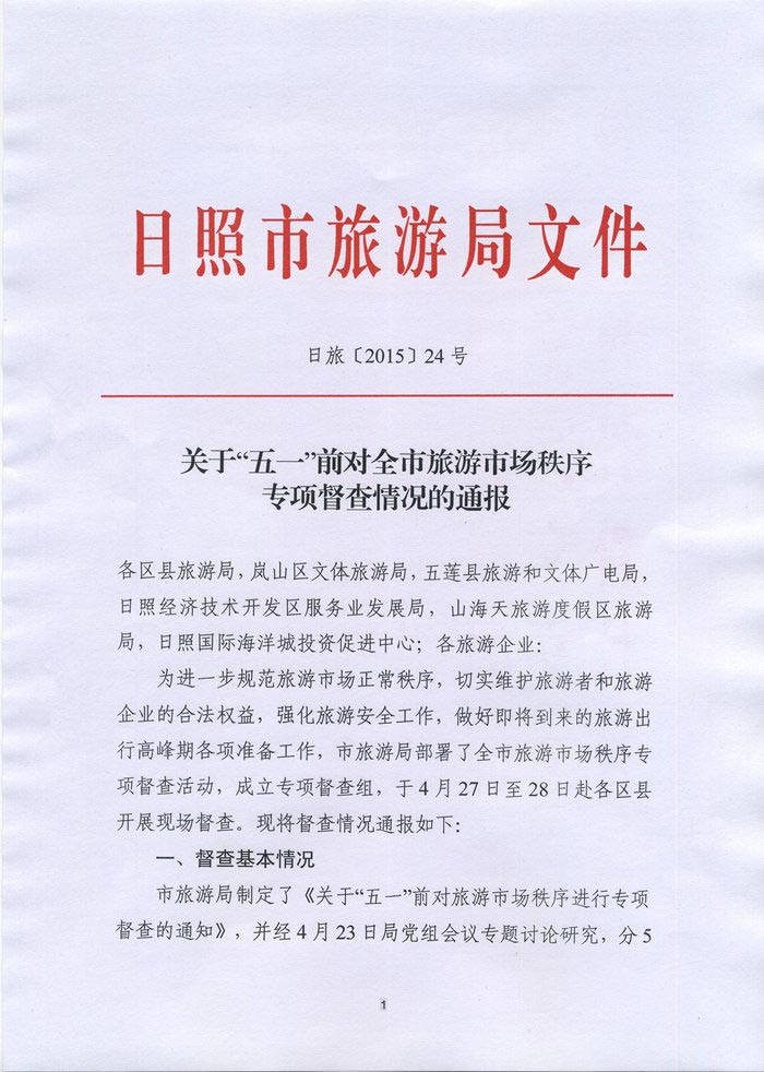 关于“五一”前对全市旅游市场秩序专项督查情况的通报(2015年04月29日)