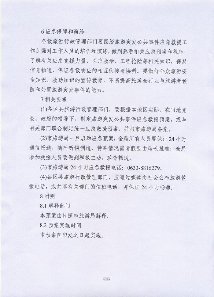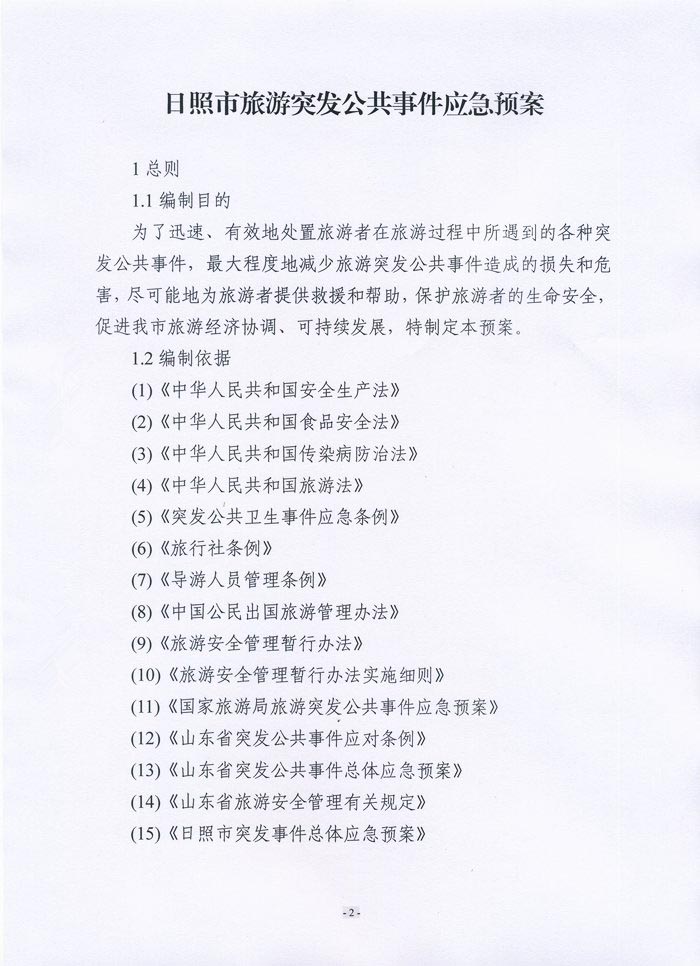 关于印发《日照市旅游突发公共事件应急预案》的通知(2015年04月29日)