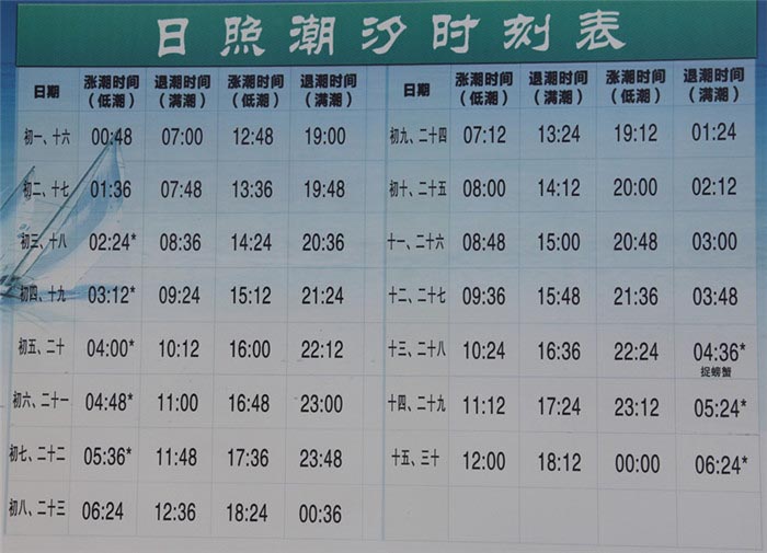 附日照潮汐表,自由垂钓者可根据潮汐选择合适的垂钓时间奥~