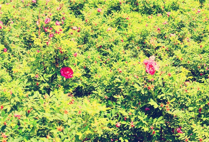 杨柳萦桥绿,玫瑰拂地红。漫山遍野的玫瑰花就这样成簇成簇的开着,吸一口气都带着香甜。在这里,自然而然的就放慢了脚步。一切烦意都随着花香飘逝。你瞧,在山水映衬下,娇滴滴的玫瑰格外风情万种。