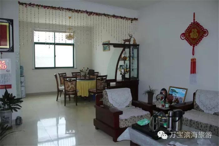 万宝民俗旅游小镇为高档别墅楼,小镇内一年四季色彩丰富,乔木、灌木、花卉、草皮,镶嵌在道路两侧,每套房都是独门独户,庭院为铝合金全封闭,防蚊蝇,环境卫生好。一共2层,3个房间。两层均有独立卫生间,抽水马桶,步入式淋浴间,空调,32寸液晶纯平电视、免费的高速宽带、以及众多的便利设施等着您的入住体验,是日照富有特色的高档配置民俗旅游区。在温馨的客房中享受家的感觉,品尝到地道的无公害海鲜美味,在海边体验自然的馈赠和乐趣,并有望成为迎接黄海日出第一人,享受生活,品味人生!