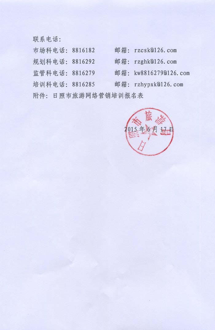 关于举办日照市旅游网络营销培训班的通知(2015年06月17日)