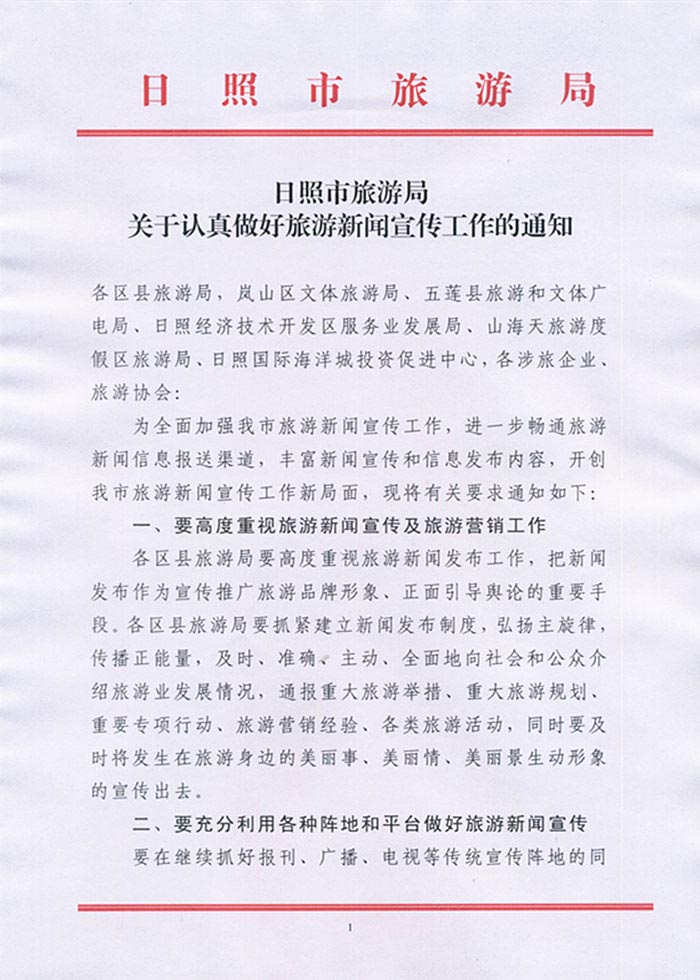 关于认真做好旅游新闻宣传工作的通知(2015年07月10日)