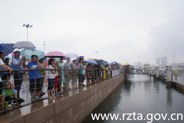 虽然天空飘着雨,可丝毫没有减弱运动员们的参赛激情,前来观看的市民们也是热情高涨,纷纷撑伞眺望,不想错过每一刻的精彩。
