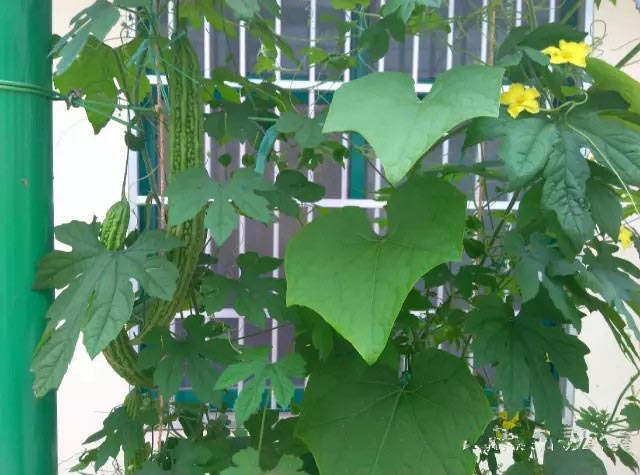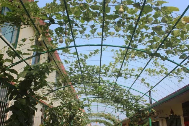 这里,环境优美,绿树成荫,到处爬满了小葫芦,彩色南瓜、丝瓜、苦瓜,出门就可以看到。
