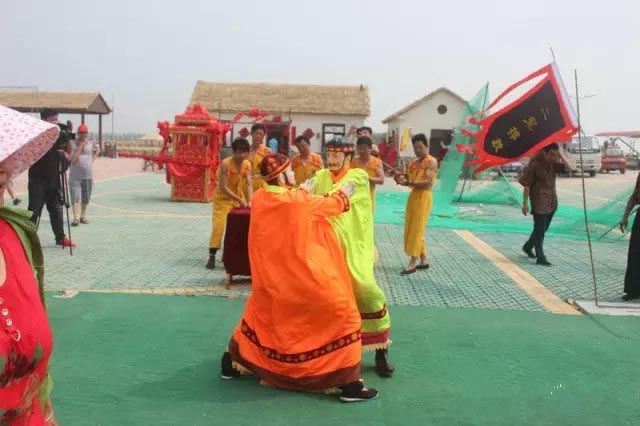 这里,可以欣赏精彩的渔家文化民俗风情演出,滨海渔村的迎亲嫁娶,串起民间技艺表演,酿酒制茶,拿鱼捕虾等演艺表演。
