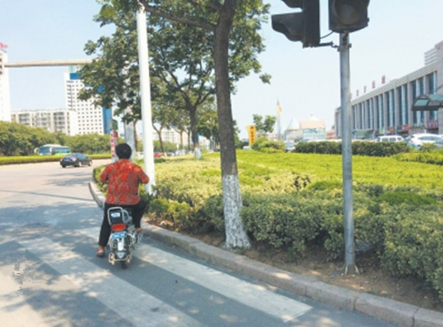 斑马线通向绿化带 过路人该“何去何从”(2015年08月15日)