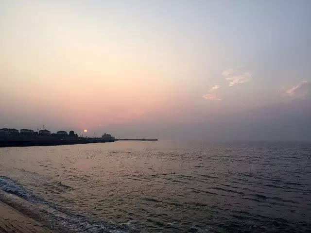 8月14日,凌晨4点30,我们硬着头皮起床去看日出,这是这一趟最大的愿望,谁也没赖床,利利索索地走到海岸,这时候已经有很多人等在那里了。