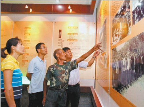 8月27日,在岚山区碑廓镇碑廓二村山东军区军事工作会议旧址,当地群众在参观抗日战争滨海军区事迹展览馆。 岚山区碑廓镇曾是抗日战争、解放战争时期的重要革命根据地,罗荣桓、肖华、谷牧等老一辈无产阶级革命家在这片热土上带领山东军民英勇抗战,留下了无数可歌可泣的英雄事迹。1942年至1944年,罗荣桓率领一一五师在滨海地区指挥抗日战争期间,在碑廓二村居住三年之久,指挥过甲子山战役等,召开过山东军区政治工作会议及军事工作会议,对山东地区的抗日战争具有重要意义。