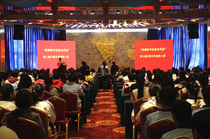 “爱樱维”寻找最美导游—第九届日照市导游大赛暨“十大文化旅游目的地品牌”旅游线路设计大赛总决赛10月29日上午在日照蓝海国际大酒店正式拉开帷幕。来自各旅游企业、院校的15名导游员进入了本次决赛,400多人到现场观摩助威。