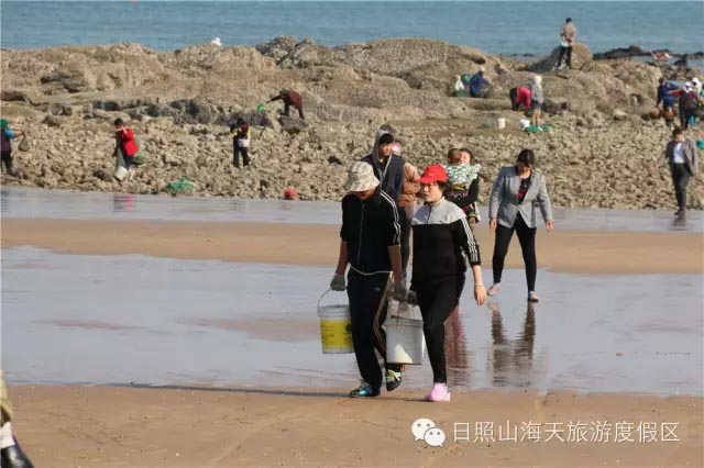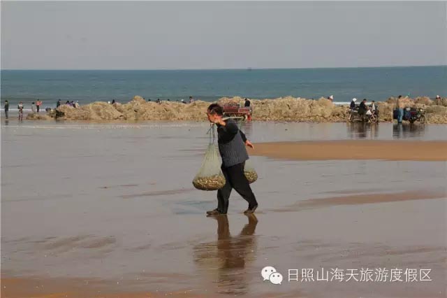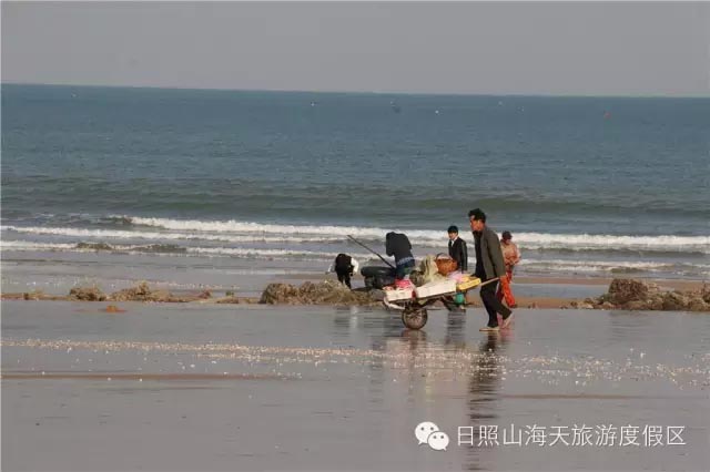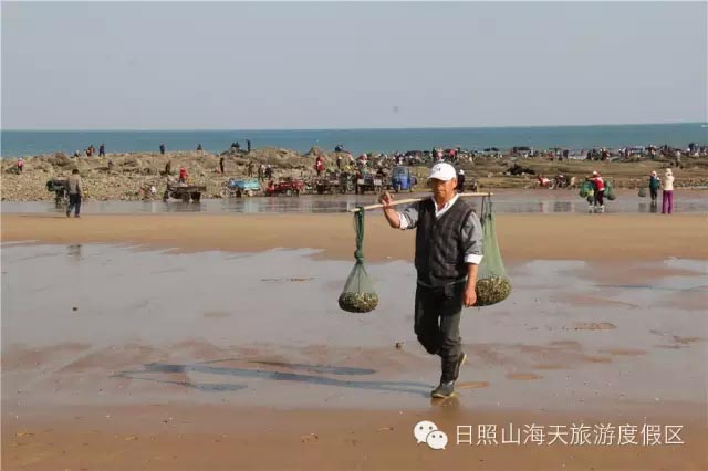 真是不得了了!山海天海边出了大事了!附近村民都出动了,男女老少,成群结队,千姿百态,场面如此壮观,到底怎么了? 咦?原来是退大潮! 据在阳光海岸赶海的渔民说,今天是退大潮,一年仅有那么几天很罕见的退特别大的潮,大片的礁石和海滩全部裸露出来了,拾不尽的牡蛎、蛤蜊、海虹、海螺、螃蟹、小螺丝....现场什么情况?请继续观看以下场景~ 挑着的 背着的 抬着的 推着的 用自行车驮着的 有三五成群的,互帮互助的 谁说赶海是女人的专利?男人们也都来啦! 还有夫妻版 女人捞了太多海货,男人来帮忙~ 情侣版~ 据说,一起赶海能增进情感呢~有木有? 看,这表情、这造型,也是醉了~ 满载而归喽~看看他们都收货了什么? 海螺和小螺丝 多的就是牡蛎啦,超鲜美~ 然还有海参?纯野生的哦~ 出发回家喽,走起~