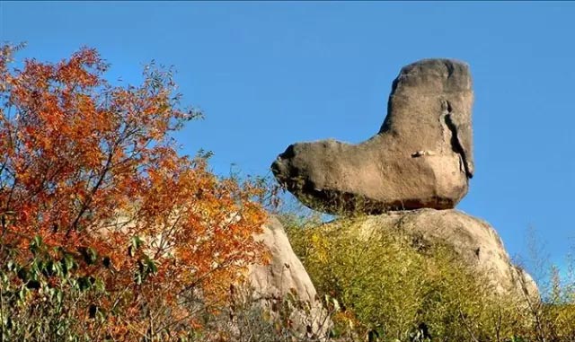 又名镇龟靴石,位于九仙山上。巨石高达三米,重达数万斤,酷似古人穿的靴子。传说八仙过海路过此地,和山神一起在此治理荒山,铁拐李脱下一只靴子,装来净水,山神用柳枝蘸了净水洒遍山峰,八仙辞别九仙山过海去后,靴子遗留在此,故名靴石。