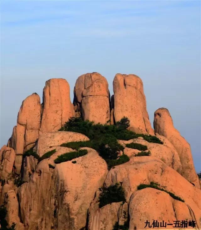 此石位于九仙山风景区,宛如人的五根手指,直指苍穹,颇具气势。