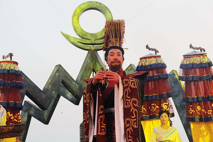 一、穿越时空的表演,让一脉相承的太阳文化崇拜贯穿始终。活动精心设计的燔柴乐舞、祭天祀日等远古时期极具代表性的仪式与扫一扫迎大奖、快闪表演等时代气息十足的活动相互穿插、交融。燔柴乐舞环节,伴随着由500个号角吹奏出的乐曲,巫师带领人们载歌载舞,迎接太阳的升起;祭天祀日环节,皇帝带领文武百官在祭坛前颂读祭文、拜日祈福,重现古代的人们太阳崇拜的场景;圣钟祈福环节,将时空拉回现代,敲响太阳圣钟,现场观众共同感恩太阳,祈祷国泰民安;时空交错中体现出自远古到现代一脉相承的太阳崇拜。