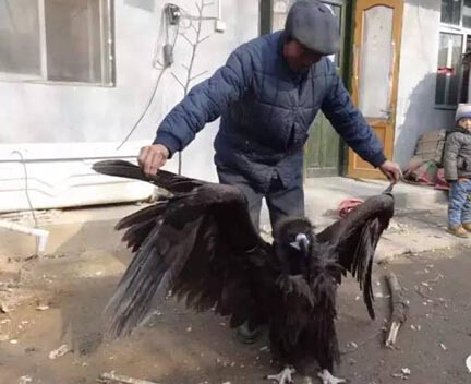 这只“巨鸟”身高有0.8米左右,展开翅膀体长近3米,通身黑褐色的羽毛,嘴巴尖而带钩,具有攻击性。不知是什么原因,抱回家的“巨鸟”一直在吐,赵学臣对其精心护养并及时上报有关部门。目前,这只“巨鸟”已被县林业局带走。据网上查证,该“巨鸟”酷似国家二级保护动物——鹫类。