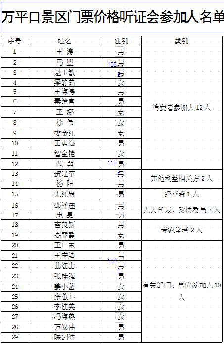 依据《中华人民共和国价格法》《政府制定价格行为规则》《政府制定价格听证办法》《山东省定价目录》和《山东省价格听证目录》等有关规定,经市政府同意,市物价局决定组织召开万平口景区门票价格听证会。听证人、听证会参加人已经按照规定程序确定。现将有关事宜公告如下: