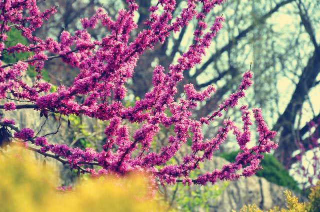 更有樱花,梅花、桃花、梨花、迎春花、紫荆花满山花开。