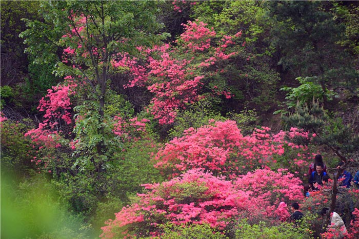 五莲县是我国杜鹃花资源的主要分布地之一,是江北最大的野生杜鹃花栖息地,拥有迎红杜鹃、映山红、照山白等三大品系、40多个杜鹃花品种,面积达1300多公顷,以其品种多、花期长、面积大、分布广等特点冠绝江北。每年4月至6月盛花时节,五莲山南苑、九仙山黑牛场、靴石“三大仙家花园”内的野生杜鹃花漫山遍野竞相开放,姹紫嫣红,千姿百态,令人叹为观止,成为国内观赏杜鹃花的胜地,引 得四方游客纷至沓来。
