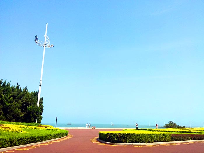 日照栈桥是连接帆赛基地与比赛场地的通道,南侧为挡浪坝有450米长,北侧的为挡沙坝有350米长。它的主要作用是挡沙、防浪、束水三大功能,不管海上风浪多大,港池内总是风平浪静。