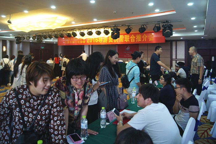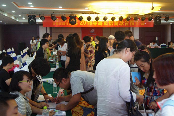 进入6月中旬,日照旅游旺季大幕即将拉开,为积极响应我市“旅游富市”战略,帮助协会会员提供更多的就业机会,更好地为旅行社服务,6月17日下午,日照市导游协会联合日照市旅行社协会举办了2016导游员供需联合推介会。日照市旅行社协会会长张栋梁、日照市导游协会会长张山华出席会议,日照市20家旅行社负责人、日照市导游协会全体会员等共200余名旅游业界精英参加了推介会。