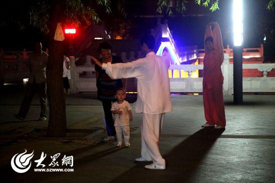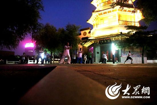 到了晚上,海曲人家是散步、运动的好地方,老人们在河边的徽派建筑当中舞起太极拳,就连调皮的孩童也看的入了迷。