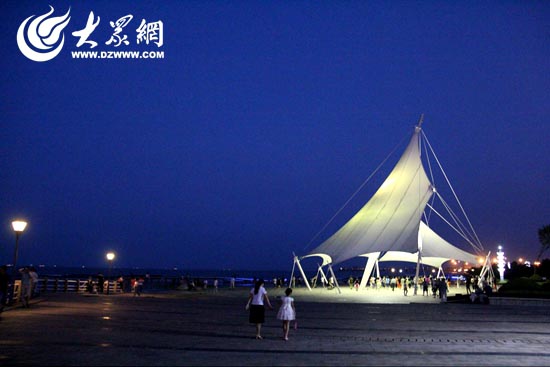 广场上、小区里,日照一到晚上也到处都是跳广场舞的人群,与其他地方不同的是,在海边的人们一边沐浴着海风,一边享受着这样一个充满画意的帆之舞台。