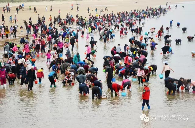 据了解,万宝滨海风景区位于日照市山海天旅游度假区两城镇,是一处以海水浴场、赶海、垂钓为主,集吃、住、行、游、娱、购为一体的特色旅游景区。风景区内赶海园面积近1000公倾,全部为沙质滩涂,紧靠日照两城河入海口,是淡盐水交界的地方,自古以来就是各种海洋生物繁衍栖息的宝地,资源丰富,西施舌、日本冠鞭蟹(俗称“海知了”)、文蛤、白蛤、香螺、扇子面、大竹蛏、虾皮等贝类海洋生物众多。