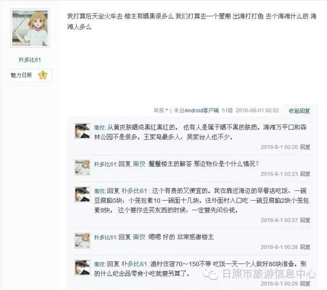 近日,小编在浏览贴吧时,发现一枚暖男楼主,在回程的火车上写了在日照旅游的三天两夜旅程,语言朴实,攻略实用,并一一回复了网友的疑问。以下是部分贴吧截图,是不是暖男气质满屏? △26号行程 △27号行程 △28号行程 以下是回复网友疑问的细心解答 点击查看贴吧
