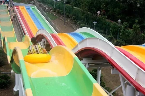多种颜色组合成的彩虹滑道,让你从高空俯冲而下,满眼的缤纷,尽情地感受“从外星回归地球”吧!