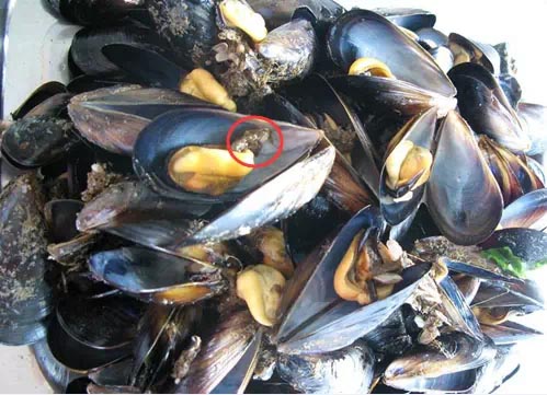 【哪里不能吃】海虹里黑黑的絮状物需要摘掉,为那个黑黑的絮状物是一种纤维物质,在肠胃里很不容易消化的。