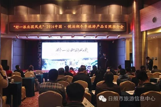 2016年11月7日下午,由牡丹江镜泊湖旅游集团举办的“好一派北国风光”2016镜泊湖冬季旅游产品日照推介会在日照蓝海国际大饭店举行。日照市旅游发展委员会副主任赵志超出席会议并发表讲话。日照市各大旅游社及新闻媒体参会。镜泊湖旅游集团相关负责人发主要向与会人员全方位介绍了镜泊湖景区四季的秀美风光、今冬旅游新产品“萨满村落”及相关旅游政策。