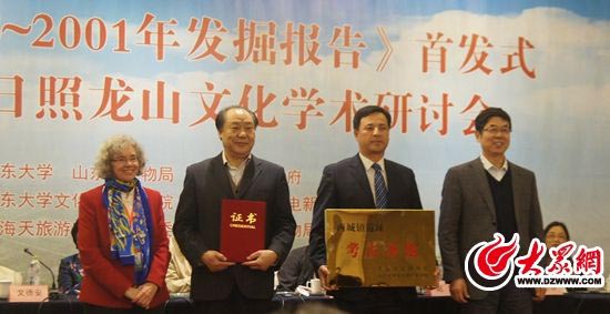 11月20日,由山东大学、山东省文物局、日照市人民政府主办,山东大学文化遗产研究院、日照市文广新局、山海天旅游度假区管理委员会、日照市文物局承办的《两城镇1998-2001年发掘报告》首发式暨中国·日照龙山文化学术研讨会在日照举行。副市长郇梅出席开幕式并致辞,国家文物局文物保护与考古司考古处副处长王铮,中美日照两城镇考古合作项目美方领队、耶鲁大学教授、“日照市荣誉市民”文德安,山东省文物局党组副书记、副局长周晓波和来自海内外的80余名专家学者出席首发式。