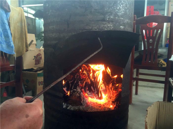院子里有一个大大的自造火炉,暖暖的!