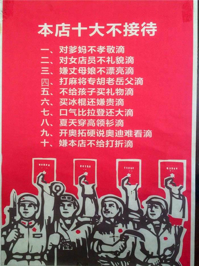 还有那引人入帘的《本店十不接待》!