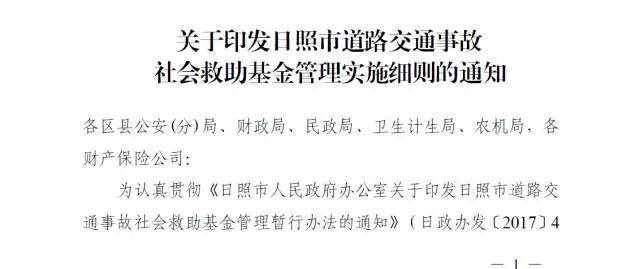 日照6部门联合通知:交通事故,政府可先来垫付“救命钱”!(2017年03月08日)