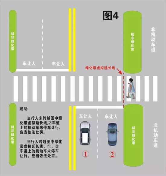行人从人行横道横过道路时,在确保安全的情况下,应当及时通过。行人未进入人行横道,机动车只要减速通过是不会被处罚的;另外行人在人行横道玩手机、打电话等不走,机动车停车等待后继续通行的不予处罚。