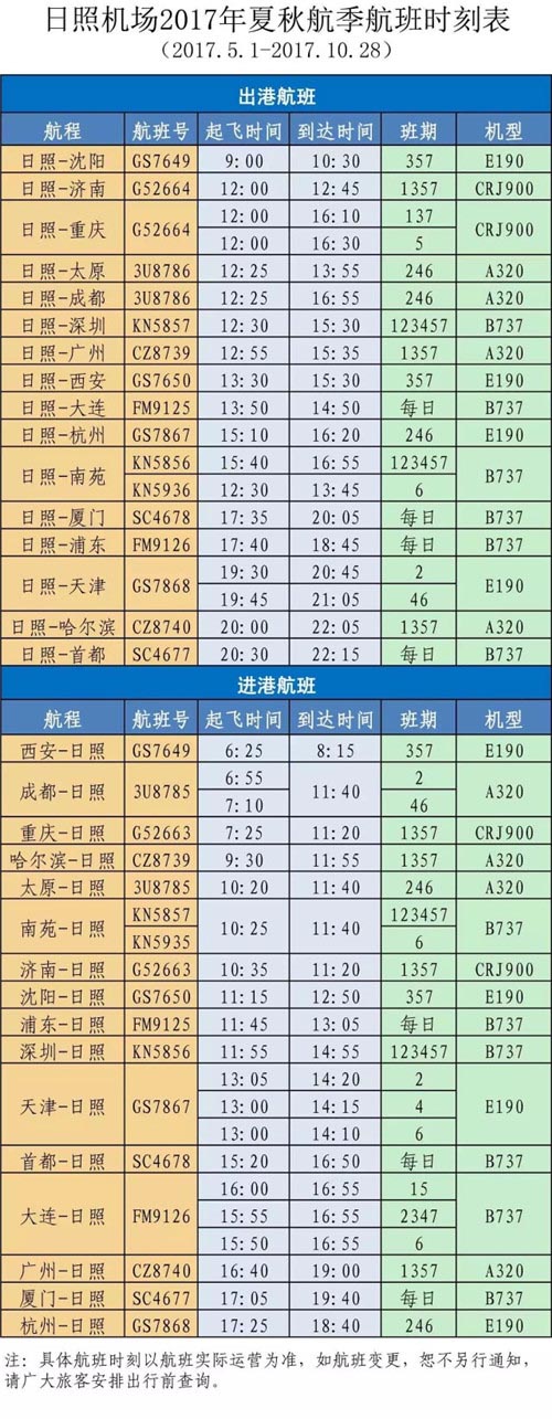 注意!日照机场夏秋航季两条航线航班时刻微调(2017年04月29日)