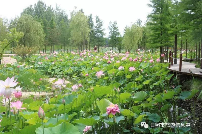 观看荷花的石头栈道、木栈道,池中还有休息厅